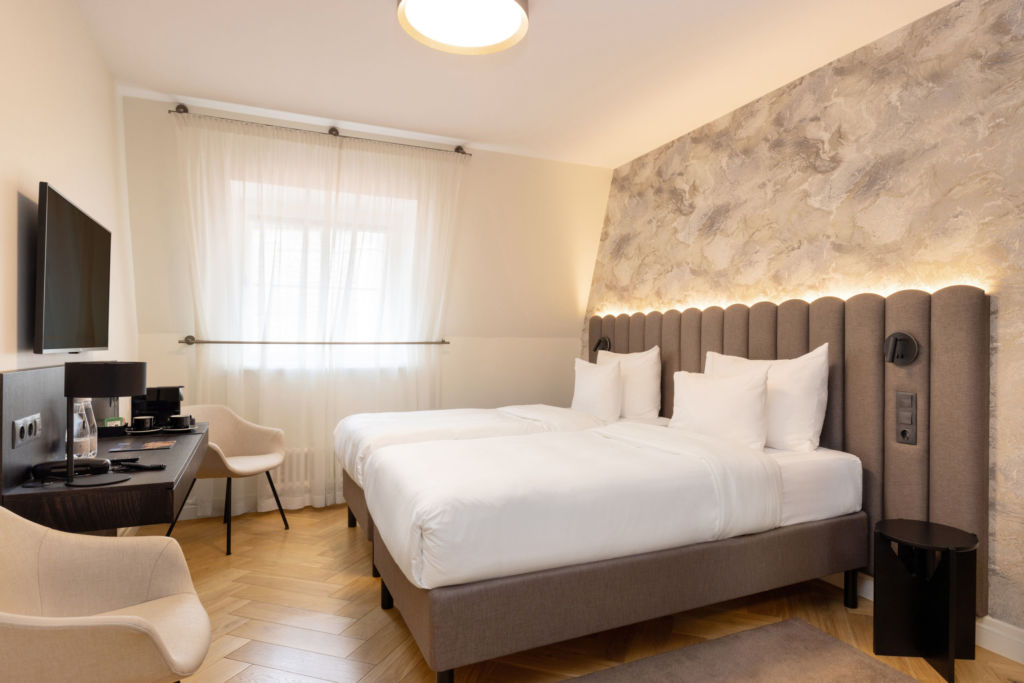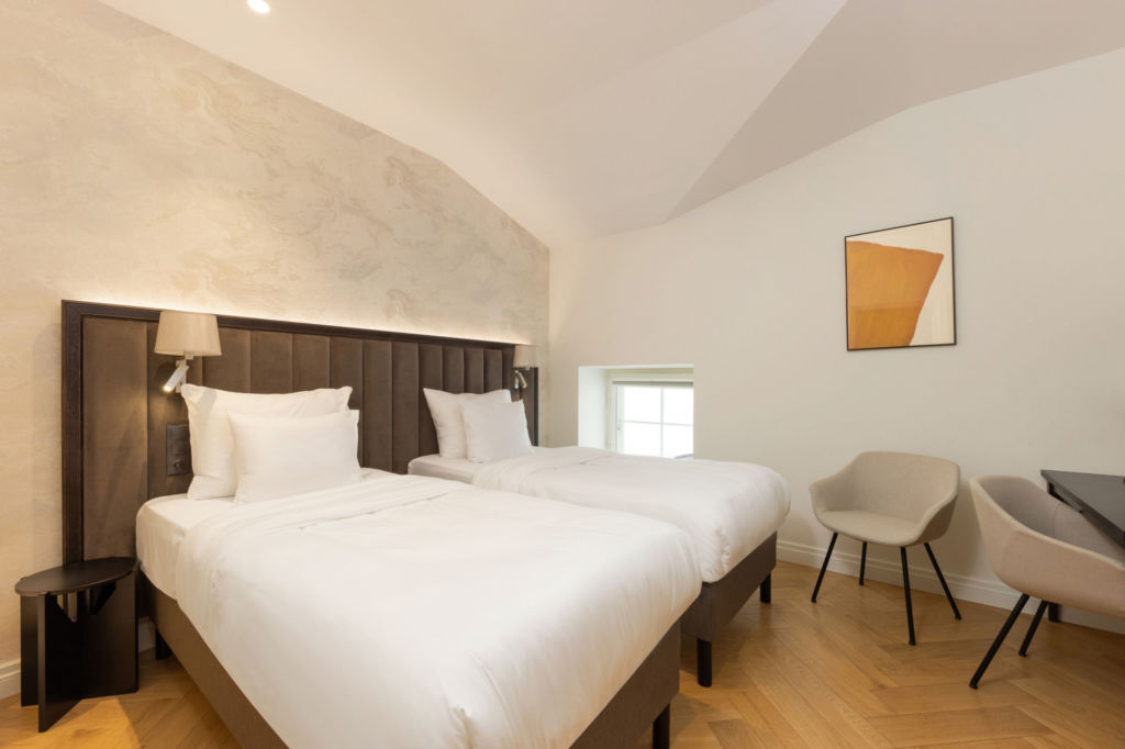 Experience the perfect blend of history and luxury in our Classic Nunne twin room. Ideal for friends or companions, this room features two comfortable 90 cm wide beds, providing individual comfort for each guest. The room size ranges between 16-24 m².