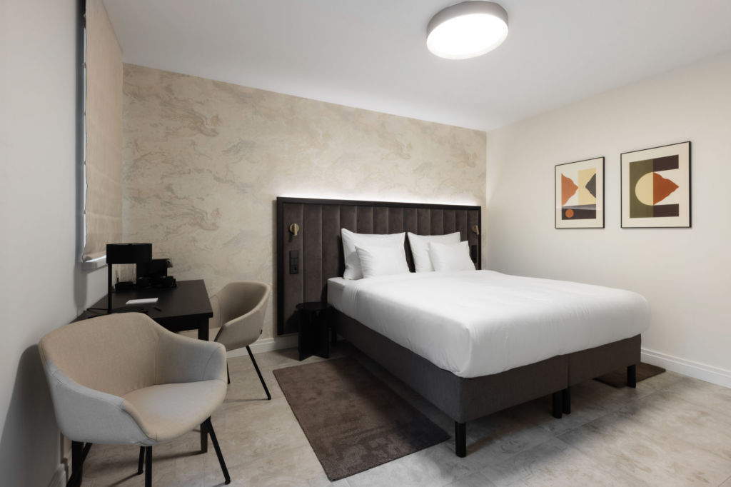 Our room interiors are designed to offer our guests warmth and comfort. We feature furniture, lighting and art by local manufacturers and artists to highlight the beauty of Estonian craftsmanship and minimize the environmental footprint of our hotel. In the bathrooms, you will find Eco Boutique products, carefully selected to be free of additives and parabens. The floors are covered with allergy-free natural oak parquet and natural and woolen handmade rugs, adding a touch of homely warmth. Luxurious 100% cotton bed linens await you in the beds, ensuring the best night’s sleep.