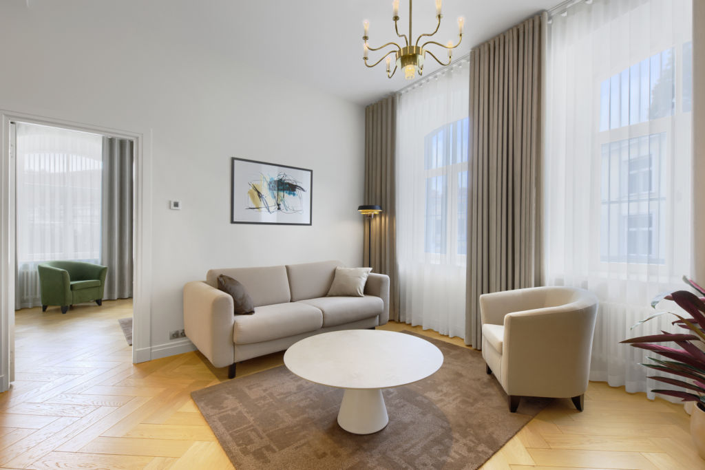 Our Patkuli suite is spacious and light-filled. This enchanting suite offers breathtaking views of the iconic Patkuli viewing platform and the majestic Toompea hill. The tastefully furnished room meets all the needs of both business and leisure travelers, offering complete comfort with separate living and sleeping areas. Enjoy the comfort of a 180 cm wide double bed, sofa bed and the convenience of modern amenities, making your stay in Tallinn truly extraordinary. The room size is 45 m².